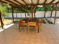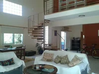 On the ground floorit has a living/dining area, a kitchen with storage room, 2wc/shower/laundry room. Half plot of garden with swimming pool.