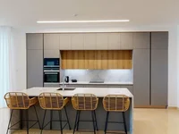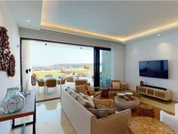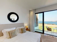The modern architectural design reflects the sea waves and colors of the surrounding environment. The large, wide, glass doors allow enjoyment of the stunning views, seen from the villa location.
