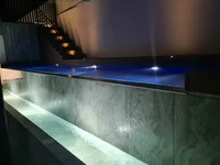 The basement where there are the gym place, provision for sauna, locker rooms, laundry room, server room, café room and garden