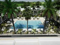 It has nine 2-bedrooms houses and twenty six 3-bedroom houses. There is a communal swimming pool of 200 m2 in a pool area of 587 m2. Parking space area and public green area are also included.