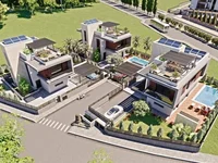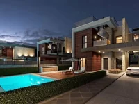 Luxury modern villas located within literally 3 min driving to sandy beaches of Mediterranean. Being a part of unique mixed-type residential development, each house has its own garden with everything needed to create a relaxed family home. Bright and spacious, villas of the complex also boast private rooftop terraces, and some have optional private swimming pools. All villas are located within a gated complex, complete with green area and a playground for children. Natural materials and a modern design aesthetic bestow villas with a congenial interior. Kitchen and living room are harmoniously combined into one space through the careful distribution of light, appliances and furniture. Paintings, cushions and curtains can all be individually customised upon request.