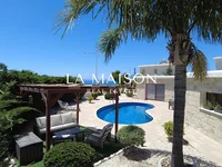 Cozy and well kept 3 bedroom bungalow set on the hillside of Tremithousa, Paphos. House comprises of 3 bedrooms, designed open plan /sitting/ dining areas leading to the private yard with patios and heated swimming pool 8x4. This property benefits of a good size corner plot facing Mediterranean sea with the views of it and Paphos town. Additionally features of irrigation system, landscaped garden, pressurized water, solar panels, security cameras, granite work tops. Beautiful bungalow its a perfect home for those who appreciates quiet neighborhood, privacy and comfortable lay out of the ideal home.