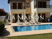 This two-story detached villa is located within the prestigious Aphrodite Hills Golf Resort & Spa in Kouklia Municipality, Paphos District. The villa has a total covered area of 226 sqm (covered verandas included) and a total land area of 1.468 sqm. It comprises an open plan living room, dining room, and kitchen and guest toilet on the ground floor and two en-suite master bedrooms and uncovered verandas of 15 sqm on the first floor. There is also a basement with a laundry room (used as a bedroom), shower and storage area. The villa also includes a private overflow swimming pool, a barbeque area, a landscaped garden, and an uncovered parking place. Aphrodite Hills is a well known residential and golf resort and includes villas, apartments, hotel, spa, restaurants, minimarket, and sports facilities including a swimming pool and 18 hole golf course. The residential complex is approximately 15km from Kouklia has easy access to the motorway.