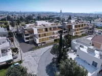This is a modern two-bedroom apartment in a contemporary building located in the upscale neighborhood of Agia Zoni, close to local services including stores and pharmacy.