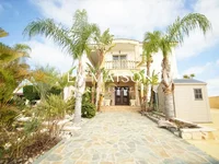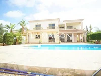 A Large luxurious Villa set in the hills of Anarita offers exclusive privacy and comfort. The villa, covering 360sqm has been built on a large plot of 3000sqm and is surrounded but mature landscaped gardens, with a large covered barbeque area and private swimming pool. As it is built on the hill is also allows for lovely views of the mountains at the back and sea views at the front. Upon entering the house you are met with two open sitting rooms either side of you and a large open kitchen in front with a connected dining area. One bedroom on the ground floor with its own bathroom give ease of living. Upstairs there is a large landing area with a small kitchenette, equipped with storage space and a washing machine. There are 3 large bedrooms on the first floor including the master bedroom with its walk-in wardrobe and ensuite bathroom.