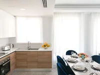 This 2 bedroom apartment is located in an exclusive block of eight luxurious apartments, situated at the intersection of three streets, benefiting from the building's carefully designed three main façades, taking advantage of the open corner features. It is centrally located just 1500m from Finikoudes promenade and 400m from the Larnaca New Marina, in an area undergoing a major upgrade. The apartment is close to self-serving shops, food stores, and schools. Features include marble staircases, security tele-screen intercoms, private parking, and gated parking entry.