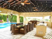 • Outdoor sound system • Security alarm system • Expansive barbecue area with a summer kitchen • Private water well