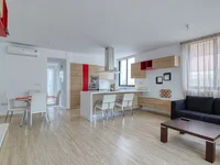 Double apartment in a new and modern building. Convenient location, all the necessary infrastructure within walking distance: supermarkets, cafes and restaurants, pharmacies and bakeries, and much more. The city zoo with a park is a 5 minute walk away. Distance to the sea 100 meters. Large bathroom with jacuzzi, guest toilet, large veranda, covered parking, storage room.