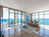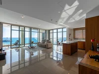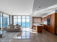 The open-plan design of the apartment is bathed in natural light, creating a warm and welcoming ambiance. Elegantly furnished and crafted with high-quality materials, the interiors radiate timeless sophistication that perfectly complements the stunning surroundings. The living, dining, and kitchen areas flow seamlessly onto spacious verandas, offering panoramic views of the sea to the South and West.