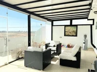 Covered outdoor space, perfect for year-round relaxation and dining.