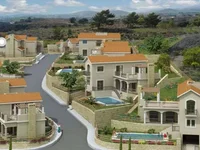 This is a Mediterranean designed residential development of 2-3 bedroom villas for sale in the outskirts of Limassol. The villas are built in large plot sizes and offer private swimming pools and large outdoor spaces.