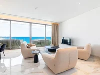 The open-plan living area welcomes you with breathtaking sea views framed by floor-to-ceiling windows, flooding the space with natural light. A sleek, fully equipped kitchen with top-tier appliances and custom cabinetry inspires culinary creativity, while the dining area creates a natural gathering point for family and friends. Three serene bedrooms offer restful privacy, and two elegant bathrooms complete the interior with style and practicality.