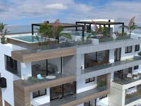 * Third Floor: 2 three-bedroom apartments (120 m²) with 30 m² and 40 m² covered verandas, each with a private roof garden, barbecue area, relaxation zone, and private pool