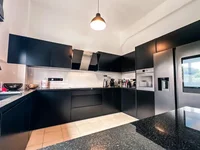 Build in kitchen in matt black with Miele electrical appliance, Induction and steam oven. Build in living room wall with plenty of space for storage and interior decoration Fully equipped laundry room with AEG washing machine and AEG dryer. Build in office table (flying) with drawers. Master bedroom with walk in drawer, separate bathroom and veranda. Basement apartment has it’s own kitchen, a big living room area and 3 bedrooms with separate bathrooms.