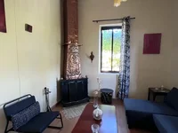 The villa features a warm and inviting living space, complete with a cozy fireplace, ideal for cooler evenings in the mountains. The fully equipped kitchen flows seamlessly into the living and dining area, perfect for both everyday living and entertaining.