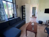 Two comfortable bedrooms share a well-maintained bathroom, while a private balcony provides a quiet spot to enjoy morning coffee or take in the crisp mountain air. A beautiful garden surrounds the home, offering space to relax, garden, or host outdoor gatherings. Additional conveniences include a covered parking space and a practical storage room.