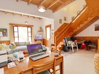 A beautiful two-storey detached house offering comfort, space, and stunning views. The ground floor features a bathroom, a bright living area with open-plan kitchen, and access to separate verandas. A wooden staircase leads to the upper level with three bedrooms and a bathroom, including a master bedroom that opens to a covered veranda.