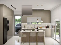The ground floor opens into a spacious living and dining area, designed as the social centerpiece of the villa. Expansive windows bring in abundant light, while sliding doors extend the space to a veranda and garden, creating a seamless indoor-outdoor lifestyle.