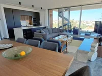 This luxurious three bedroom penthouse boasts a spacious indoor space with spectacular views of Limassol Town and the Mediterranean Sea. Offering stunning unobstructed views of Limassol's skyline and sea, it features two covered verandas and a rooftop, accessible both from inside the flat and the common areas. Residents can enjoy exclusive amenities such as an overflow swimming pool with jacuzzi jets, top-brand A/C units, underfloor heating, and floor-to-ceiling German insulated windows. The property also includes photovoltaic panels, electric blinds, and shutters, along with blackout curtains in the bedrooms. The Italian-manufactured kitchen is complemented by a Franke Vital tap providing filtered water, while the rooftop hosts a kitchenette, shower, and toilet. With a total of four toilets, two showers, and one bathroom, this apartment ensures convenience and comfort. Additional features include high-quality porcelain tiles, laminated parquet floors, ample power and connectivity points, hidden lighting in the living room, and spacious wardrobes. Security is prioritized with a covered private parking space, security flat entrance door, cameras in the parking area and building entrance, provision for a wireless alarm, and an entrance phone with full-color video. Residents also benefit from a storage room, electric gated entrance, and a landscaped garden. Situated in a prime and affluent location in the Agios Stylianos area of Limassol, just 1.3km from the beach, with easy access to the motorway and downtown, this property offers a luxurious and convenient lifestyle. Please call to schedule a viewing of this magnificent property.