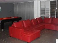 - Large converted games room with bar, pool-table and cinema projection system