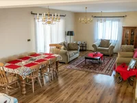 Amazing 6 bedroom detached villa located in Potamos Germasogeia area just next to Kalogiroi area. This beautiful house is only ten years old and in excellent condition. Very close to all amenities, with easy access to the highway and just two minutes from the tourist area and the beach. The house is built on a plot of 884sqm and has internal area of 550sqm including the basement which is 200sqm. Entering the house you will see the big living room with a dinning area. At the ground floor you can find separate kitchen and a room which could be used as a bedroom, office, tv room or play room. The first floor consist three big sized bedrooms and one master bedroom with en suit. In the basement there is separate place that could be used as a maids quarters. Also in the basement there is an independent guest house with own entrance, bathroom, kitchen and living room. The basement could be used as a covered garage, play room,storage room or everything else due to the big internal area. Around the house there is garden. The covered veranda with a view to the swimming pool is around 40sqm. This nice swimming pool as you can see in the photo is the most beautiful thing for your relax time in the summer.
