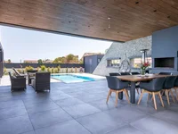 The elegant villa is distinguished by spacious open-plan living spaces, smoothly transitioning into a well-equipped open area with a private pool, covered terrace and a barbecue area, providing an ideal space for outdoor recreation. On the second floor there are three spacious bedrooms, including an exquisite master bedroom with its own bathroom, and on the lower level there is an additional bedroom with a bathroom.