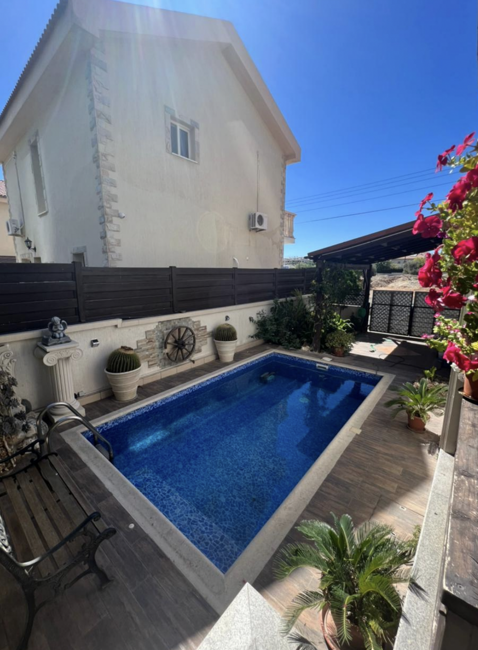 Outside, you can enjoy a private swimming pool and a BBQ area, perfect for relaxing and entertaining.