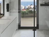 The main living area is designed as a bright and central space, combining the kitchen, dining, and lounge into one harmonious environment. Large sliding doors allow natural light to flood the interior while also creating a seamless connection to the balcony, extending the living space outdoors. The residence also benefits from a 17 m² veranda, extending daily life outdoors.