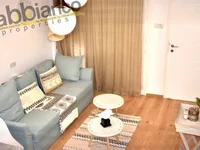 Two bedroom resale semidetached maizonette for sale in Kapparis - Famagusta province. The maizonette consists of 54 sq.m internal spaces and 20 sq.m uncovered veranda. It has two bathrooms, en-suite in the master bedroom, air conditioning system, pressure water system, covered parking space, full installation of alarm system, blinds on the windows and pergola, also it has full furnishings. It has title deed. Sale price 110,000 euros.