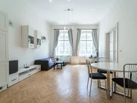 2+kk, 75 m2, on the 4th floor of a brick house on Dlouha Street in the Old Town. Life right in the historical center of Prague. Part of the apartment renovation was a complete replacement of electrical wiring, parquet repair, replacement of kitchen furniture and appliances, new radiators, a gas boiler providing hot water and radiator heating. Spotlights are installed on the ceiling.