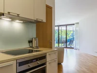 The Apartment is focused on South side and it is perfectly designed and constructed so and that each rooms offer a lot of place and universal functionality. Through a big corridor (9 m ²) we get to the living room (43,7 m ²) and the comfortable bedroom (20 m ²) and the kladovy room (2,2 m ²) and that very conveniently. In the living room the kitchen and equipped with all necessary home the equipment is locateded. From a kitchen corner the view of own terrace opens. In the living room there is a big sofa and a dining table and convenient lockers. In the bedroom the place for installation of the built-in case is prepared. The living room and the bedroom have own exit to a terrace. A part of a surface of a terrace is executed from a wooden tile and and other — lawn.