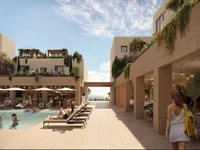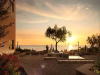 Located on Drymades Beach, the Drymades Village holiday resort consists of a series of terraced courtyards framed by architecture that weaves the project into a cohesive village feel.
