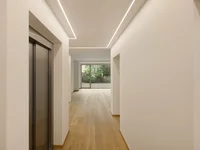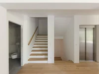 Eingangsbereich - großer Raum mit Zugang zur Grünfläche - Technikraum - Zugang zur Doppelgarage (36 m2) - Aufzugstation