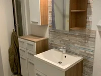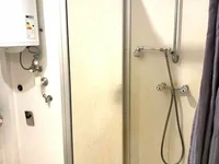 Sanitäreinrichtung: Stand-WC mit Spülkasten ober Putz, Waschbecken, Dusche, Warmwasserboiler