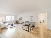 Das schöne Neubauhaus befindet sich in unmittelbarer Nähe des Schweizer Gartens, das gepflegte Grünflächen und Spielmöglichkeiten für Kinder bietet.