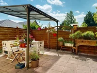 - Sonnige Terrasse mit Überdachung und Zugang zum Garten