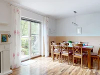 Im Erdgeschoss erwartet Sie eine helle, offene Wohnküche mit direktem Zugang zur großzügigen, teilüberdachten Terrasse (ca.34 m² - Südausrichtung) – ideal für gesellige Abende oder entspannte Morgenstunden. Ein praktischer Vorraum mit Garderobe und ein separiertes Gäste-WC (mit Fenster und Waschbecken) runden das ebenerdige Wohnkonzept ab.