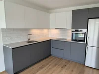 Die Wohnung verfügt über eine moderne, offene Küche, die mit hochwertigen Geräten ausgestattet ist. Der angrenzende Essbereich lädt zu gemeinsamen Kochabenden mit Freunden ein. Das Schlafzimmer ist geräumig und hell, sodass Sie hier erholsame Nächte verbringen können.