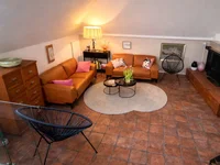 In Kombination mit dem handverlegten Terrakotta-Boden aus den Originalfliesen des alten Brandbodens, der dem Interieur Wärme, Tiefe und Authentizität verleiht, entsteht ein Wohngefühl, das an südliche, mediterrane Häuser erinnert. Der Boden prägt den Charakter der Wohnung maßgeblich: Seine natürliche Struktur, die warmen Farbtöne und die sichtbare Patina stehen für den Stil Terrakotta – Rustic – Mediterranean und verleihen den Räumen eine zeitlose Eleganz.