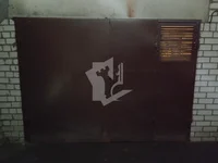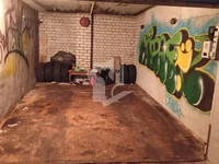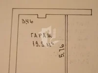 Garage Ziegel, Dach - weiche Rolle, Boden von Betonplatten. Das Tor ist Metall.