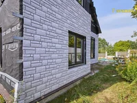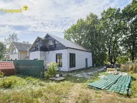 Es gibt einen gemischten Wald um das Haus. Ein großes Grundstück, Nachbarn nur auf einer Seite. Viele Baustoffe im Haus.