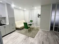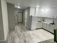 Die Küche ist mit dem Wohnzimmer kombiniert, die Loggia ist verglast, die Vordertür ist Metall, die Decken sind gestreckt, die Böden sind Laminat und Fliesen, moderne Fliesen im Badezimmer. Die Wohnung verfügt über eine Küche mit einer eingebauten elektrischen Kochfläche, einem Einbauschrank (im Korridor).