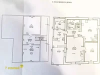 Die Gebäudefläche des Hauses beträgt 143.1 tsq.m., die Gesamtfläche beträgt 127.1 qm, vier Wohnzimmer - mit einer Fläche von 78,2 qm, ein Eingangszimmer - Wohnzimmer, Küchenbereich von 21,6 qm. Die Decken haben eine Höhe von 2,52 Metern, im Haus für die gesamte Fläche der Küche gibt es einen Keller.