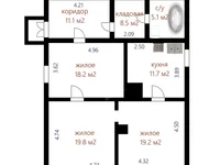 Drei Wohnzimmer mit großer Fläche: 18.2; 19.2 und 19.8 m2.