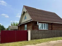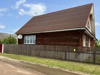 Ein Haus zum Verkauf in Slutsk an der Sowjetstraße. Das Haus besteht aus Holz, das Dach ist mit Metallfliesen bedeckt.