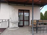 4-Zimmer Bungalow auf einer monolithischen Eisen-Beton-Stiftung. Wände von Gas-Silikat-Blöcken, isoliert im Thermoshuba-System mit der Anwendung von dekorativen und schützenden Gips Koroed. Bemalt beständig gegen UVD und atmosphärische Effekte der Fassadenfarbe. Holzböden. Viereckiges Zeltdach aus Metalldach. Fenster und Türen auf der PVC-Terrasse mit externer Laminierung. Metall Vordertür des modernen Modells.