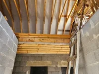 Vor allem aber wurde auf dem Gelände bereits eine neue Box des zukünftigen Haupthauses mit einer Fläche von ca. 190 m2 gebaut: Wand aus Porzellan Betonblöcke - warmes, langlebiges, zuverlässiges Material