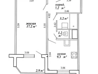 Wohnzimmer: geräumig - 17,2 m2, mit Zugang zur Loggia. Es gibt ein komfortables Sofa und einen Abstellraum. Falls gewünscht, können Sie im Zimmer zonen, teilen Sie das Bett und Erholungsgebiet.