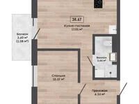 Das Layout des Euroformat 38-116 qm von 2 bis 6 Zimmern. Die Deckenhöhe beträgt 2,9 m, Dachgeschosswohnungen bis 7,7 m. Fenster mit einem sill Teil von 47-50 cm, offene Balkone. Der Bau erfolgt aus Stahlbetonplatten, die in der eigenen Anlage von SBC hergestellt werden.
