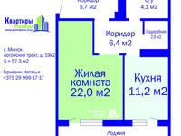 Metropolitan Wohnung: insgesamt 57.3m2, lebte. 22m2, Küche 11.2m2